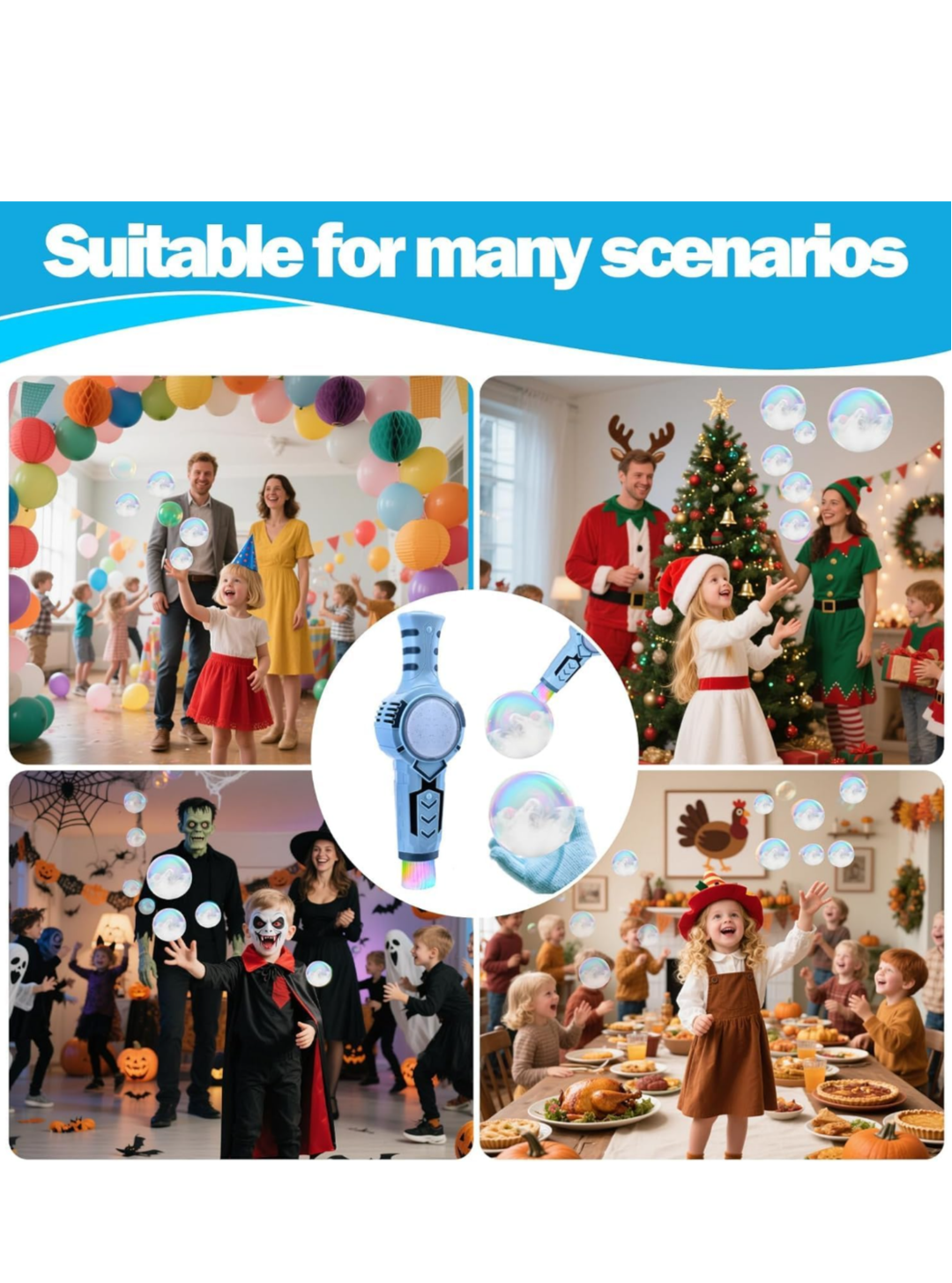 【With elastic smoke effect】Enhance your celebration with the unique elastic smoke effect and create a dreamy atmosphere as colorful bubbles blend with gentle mist, creating a truly magical experience.